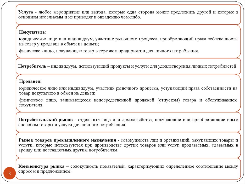Потребительский рынок - отдельные лица или домохозяйства, покупающие или приобретающие иным