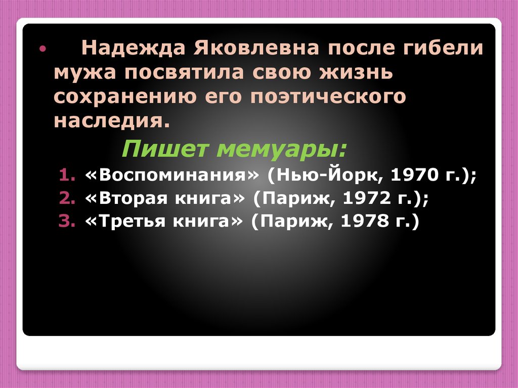 Надежда Яковлевна после гибелимужа посвятила свою жизнь