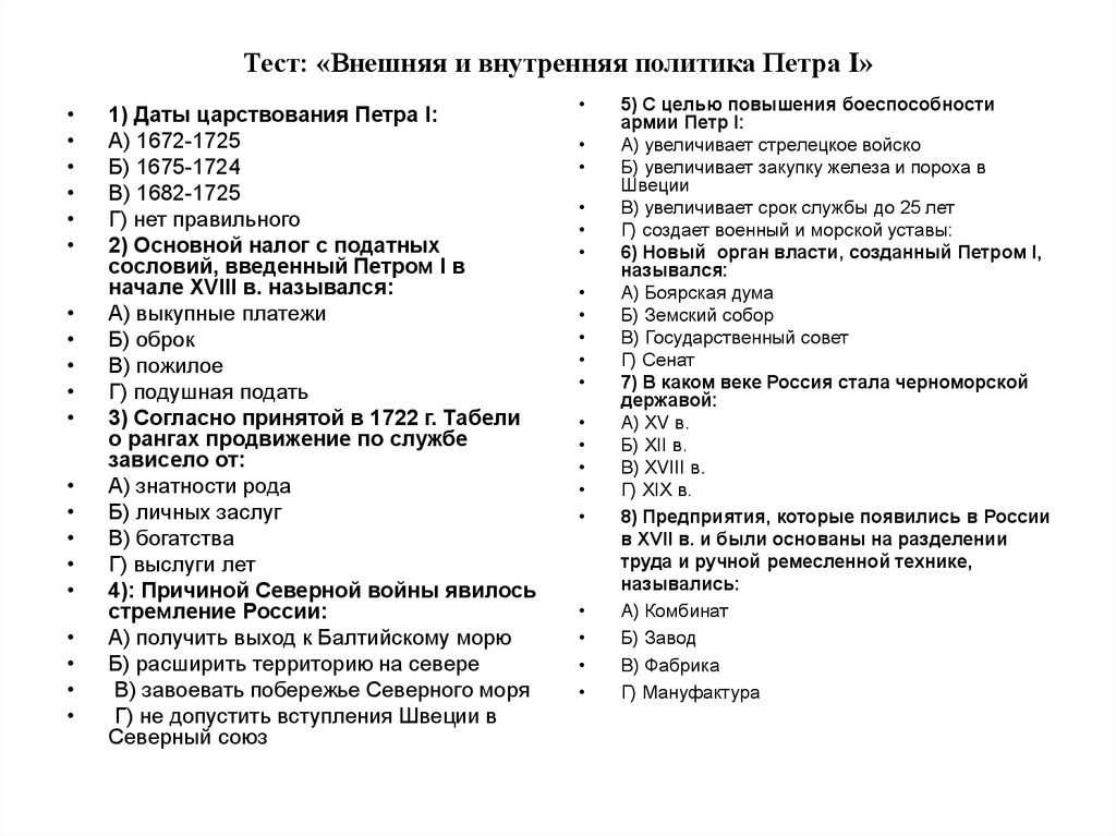 3. Тест: «Внешняя и внутренняя политика Петра I»