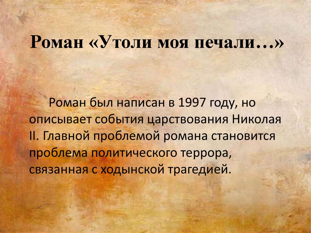 Роман «Утоли моя печали…»Роман был написан в 1997 году, но