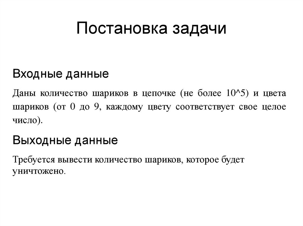 Даны количество шариков в цепочке (не более 10^5) и цвета