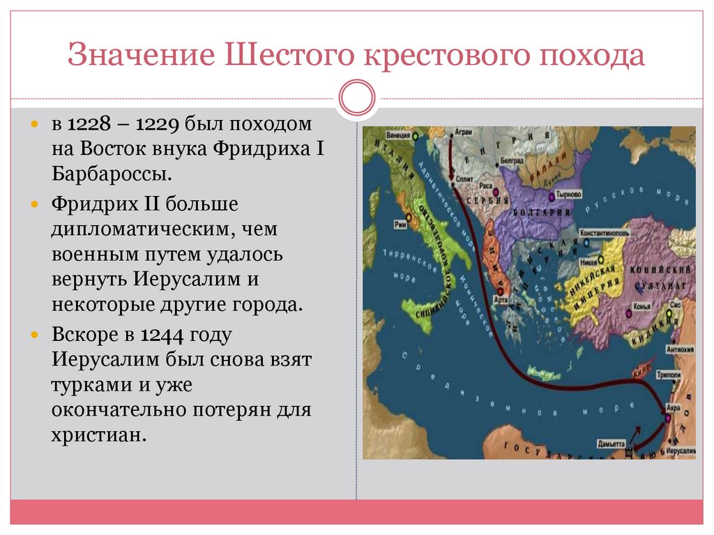 Значение Шестого крестового походав 1228 – 1229 был походом