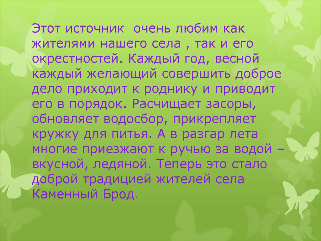 Этот источник очень любим какжителями нашего села , так и его
