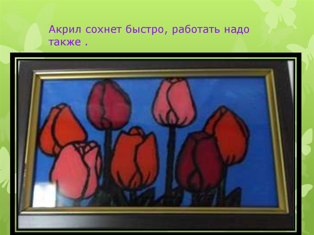 Акрил сохнет быстро, работать надотакже .
