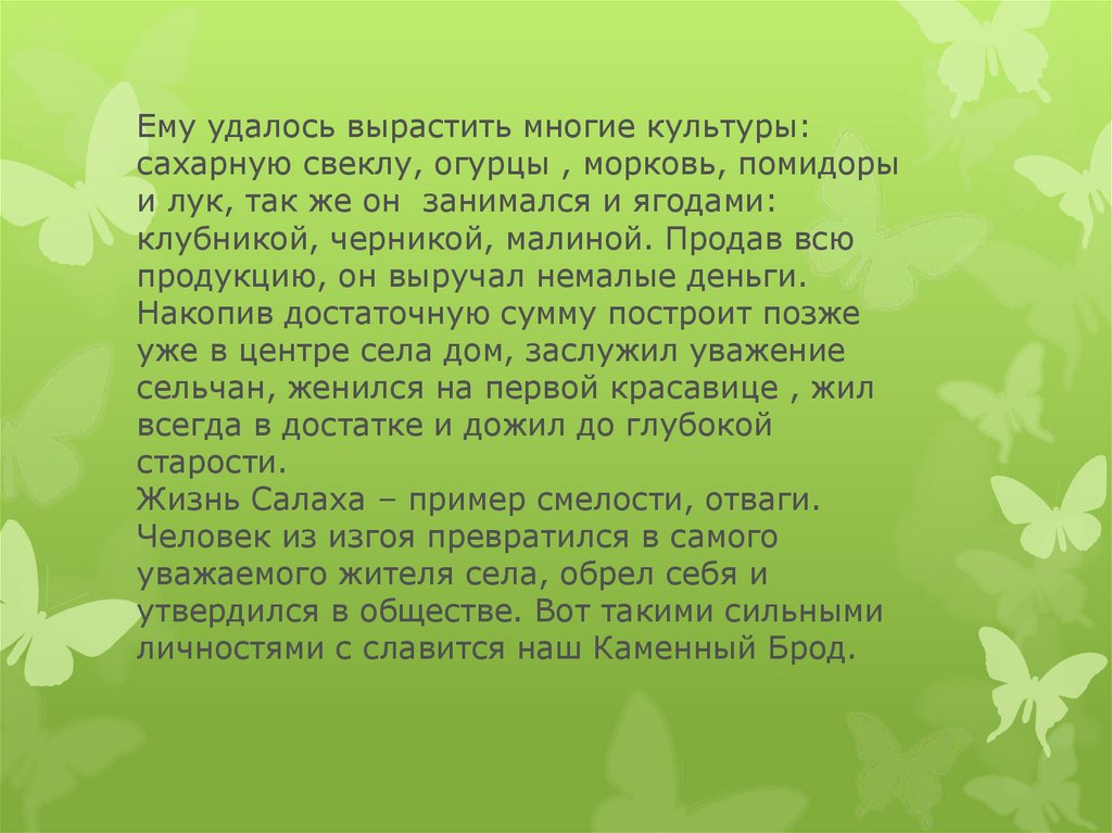 уважаемого жителя села, обрел себя и