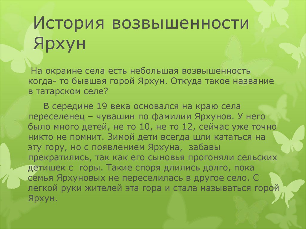 когда- то бывшая горой Ярхун. Откуда такое название