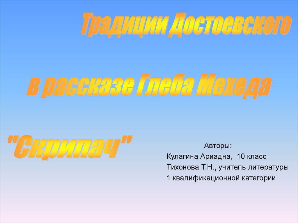 Традиции Достоевского в рассказе Глоба Мехеда "Скрипач"