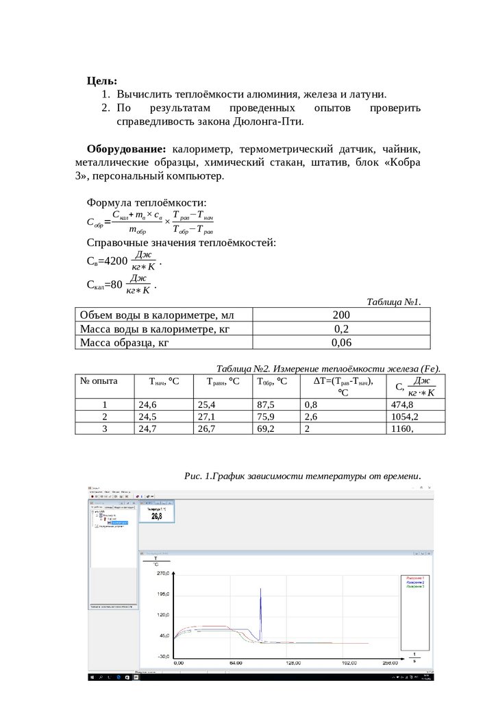 Цель:1. Вычислить теплоёмкости алюминия, железа и латуни.