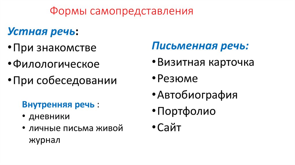 Для собеседованияПример алгоритма самопрезентации о себе: