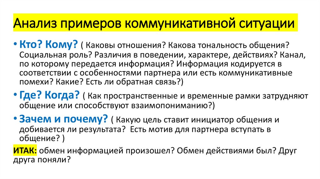 Анализ примеров коммуникативной ситуации• Кто? Кому? ( Каковы отношения? Какова тональность общения?