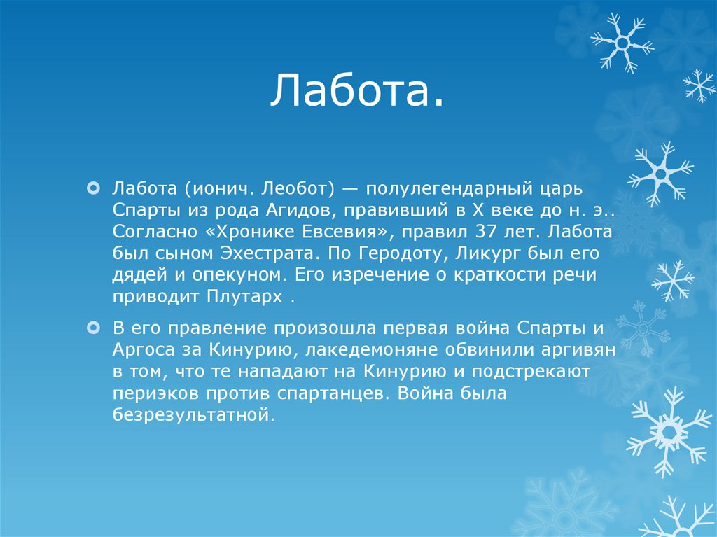 Лабота.Лабота (ионич. Леобот) — полулегендарный царь