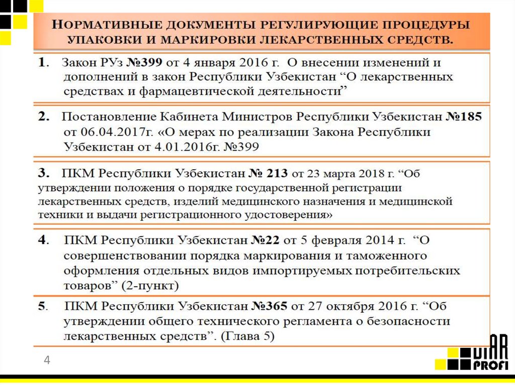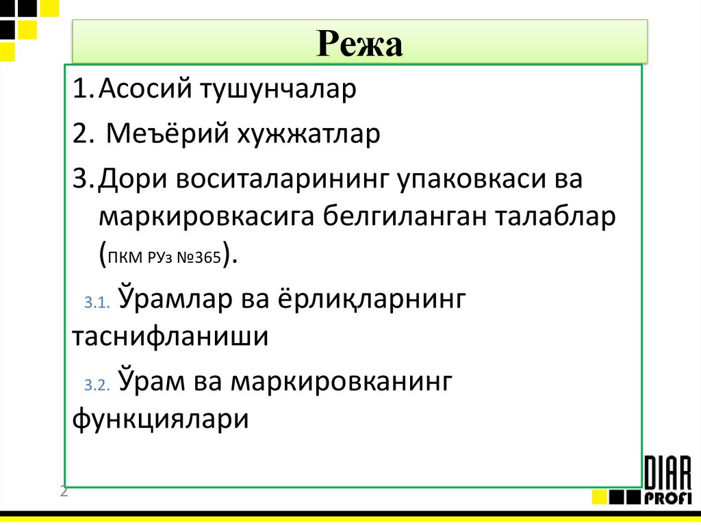 Дори воситаларининг упаковкаси(ўрамлари) ва маркировкаси
