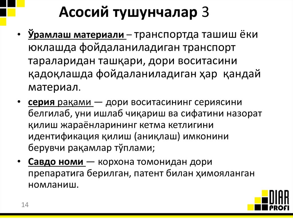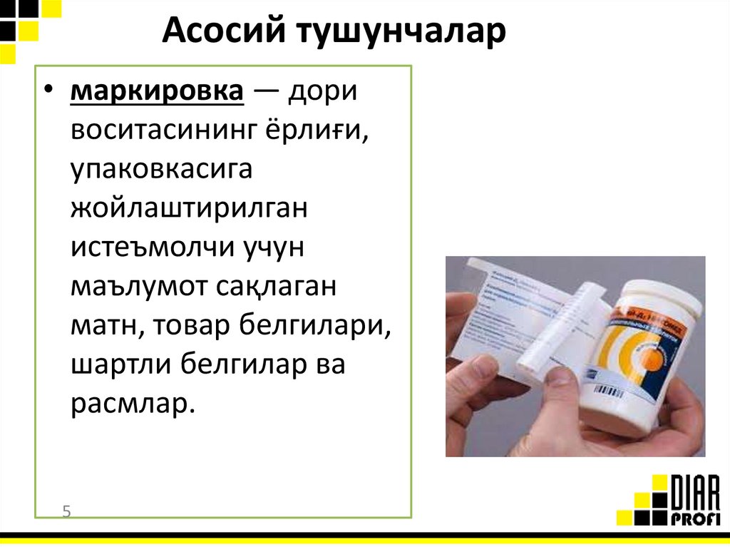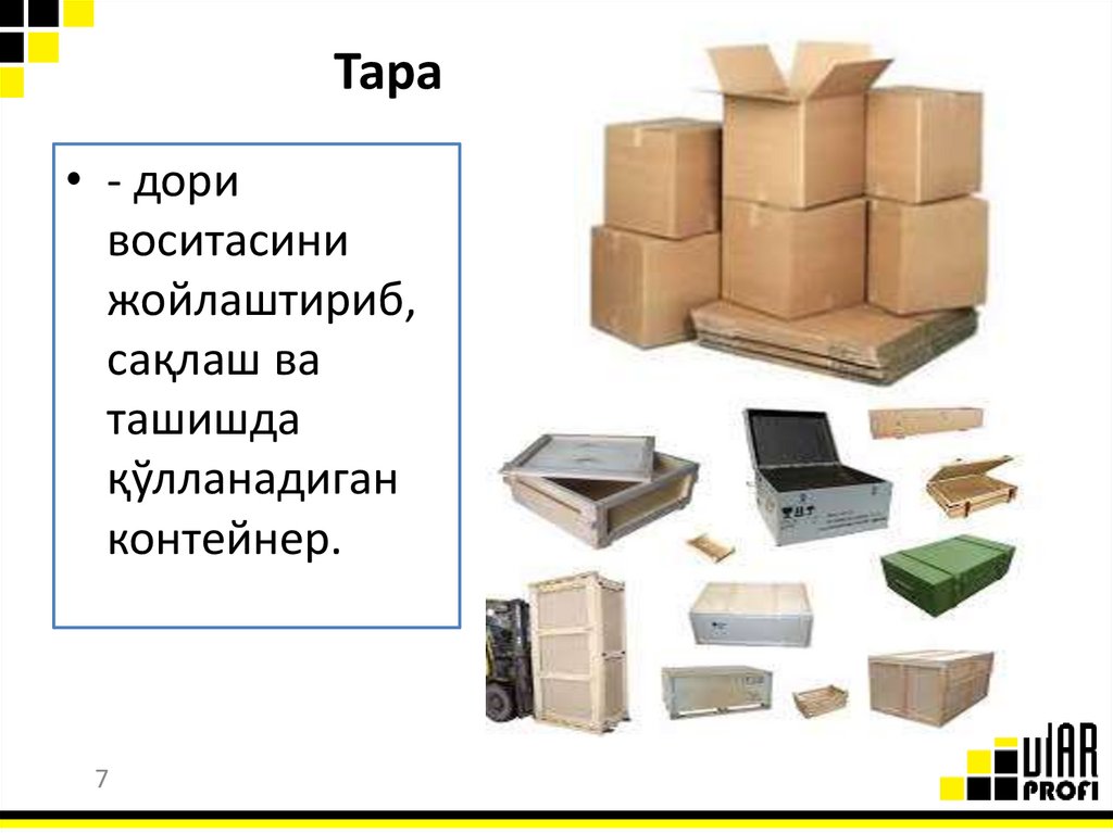 Асосий тушунчалар 3• Ўрамлаш материали – транспортда ташиш ёки
