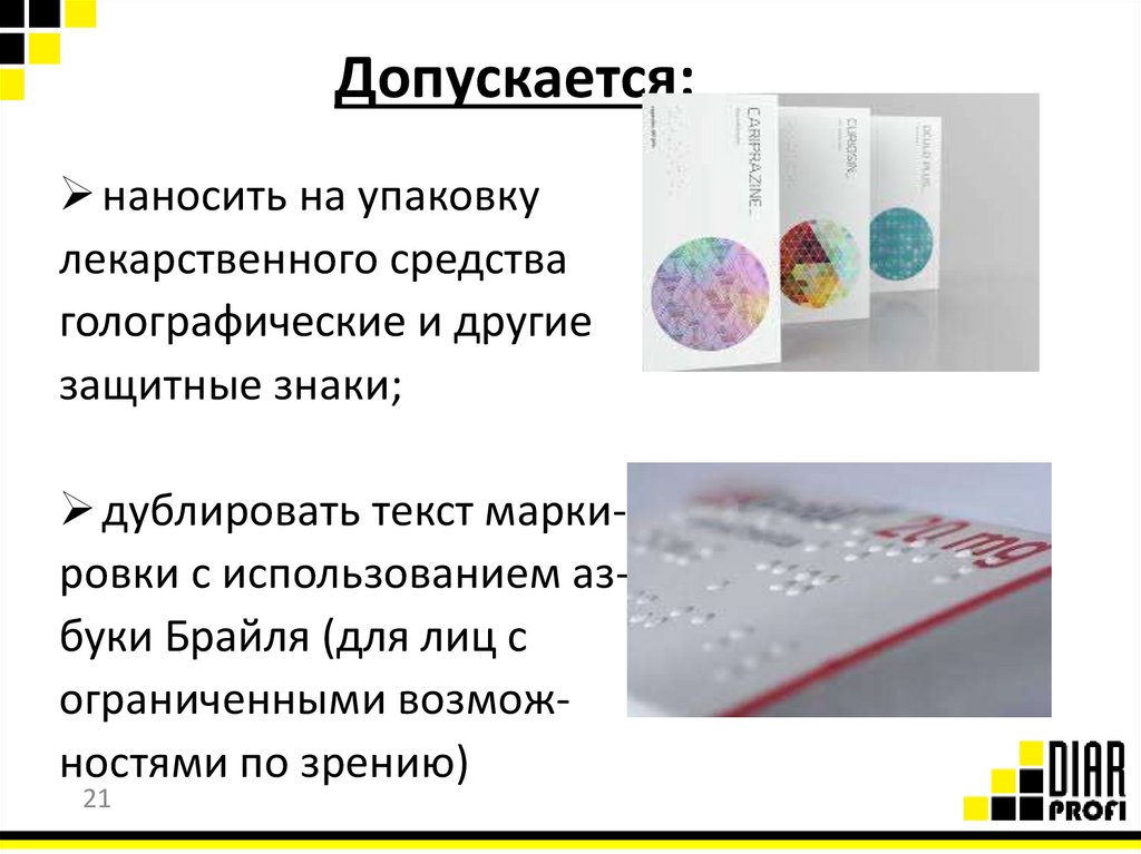 дублировать текст маркировки с использованием азбуки Брайля (для лиц с