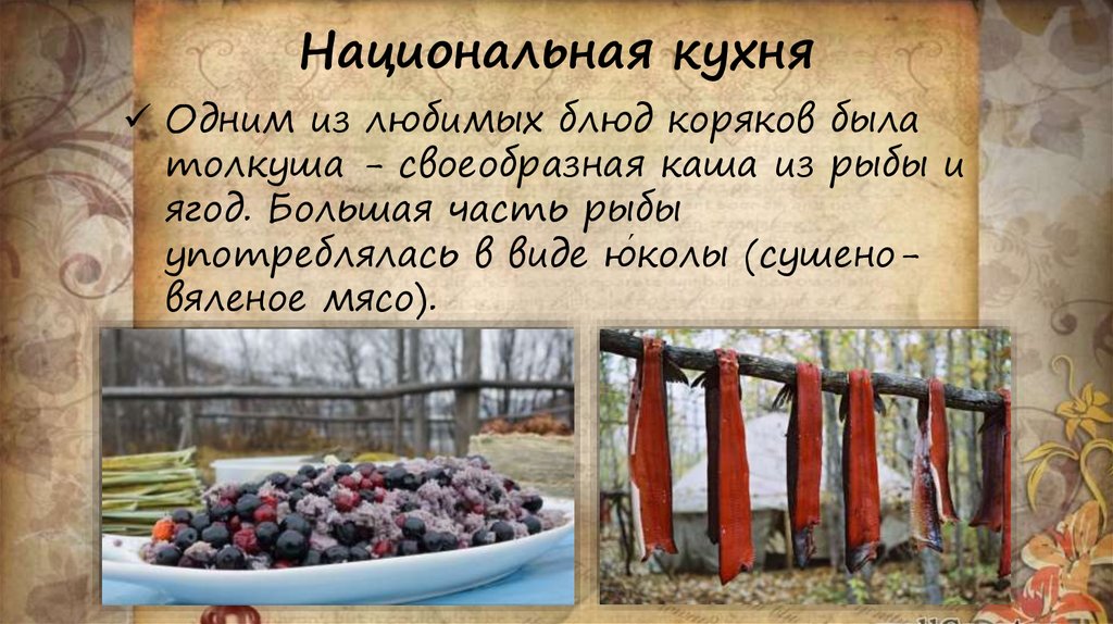 употреблялась в виде ю́колы (сушеновяленое мясо).