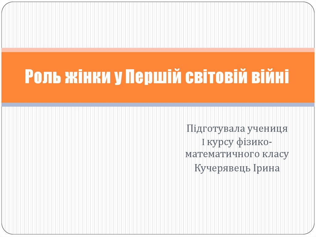 Роль жінки у Першій світовій війніПідготувала учениця