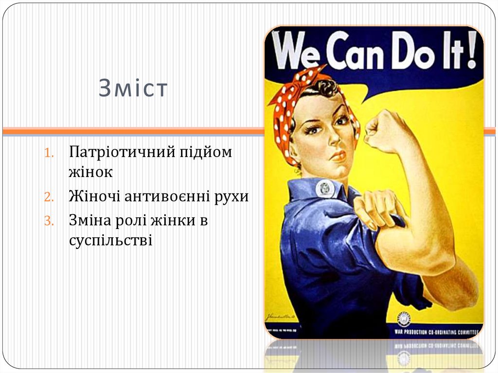 промисловості. Галузі, які були раніше заборонені для жінок, тепер вітали їх жінок.