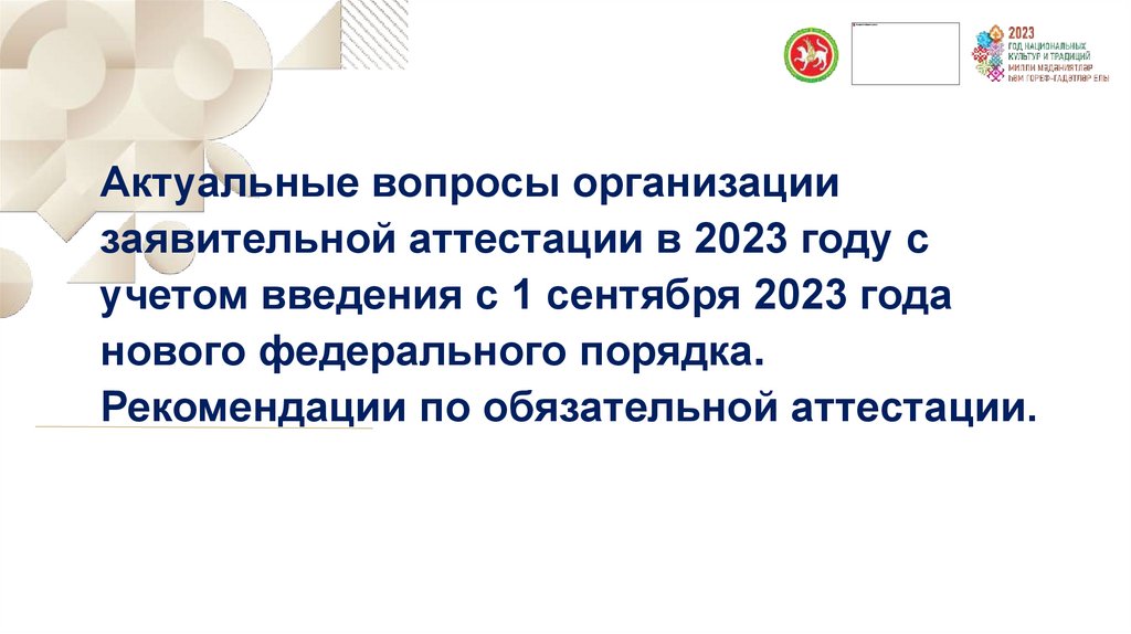 Актуальные вопросы организации заявительной аттестации в 2023 г. с учетом введения с 01.09.23 нового федерального порядка