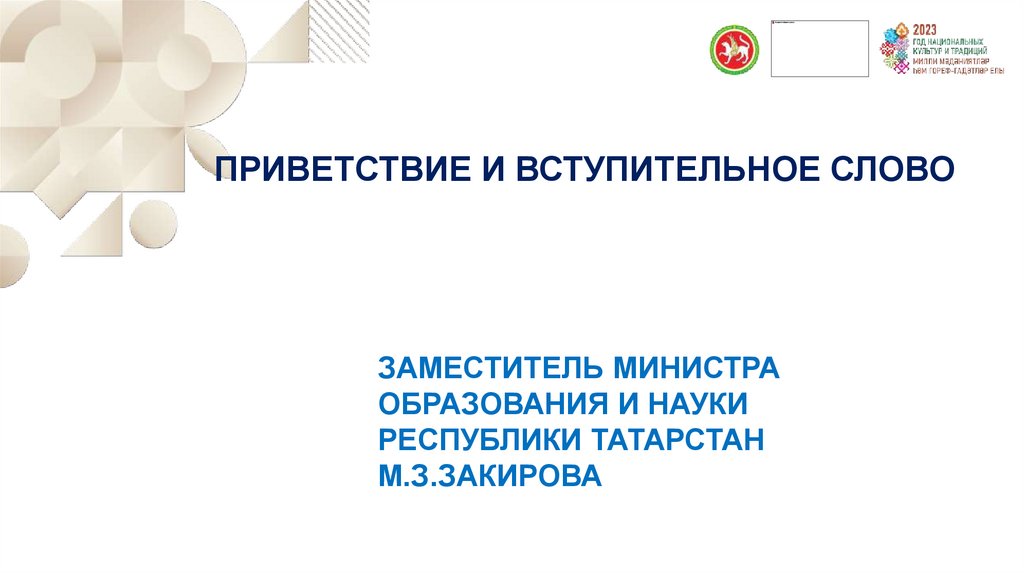 ПРИВЕТСТВИЕ И ВСТУПИТЕЛЬНОЕ СЛОВОЗАМЕСТИТЕЛЬ МИНИСТРА