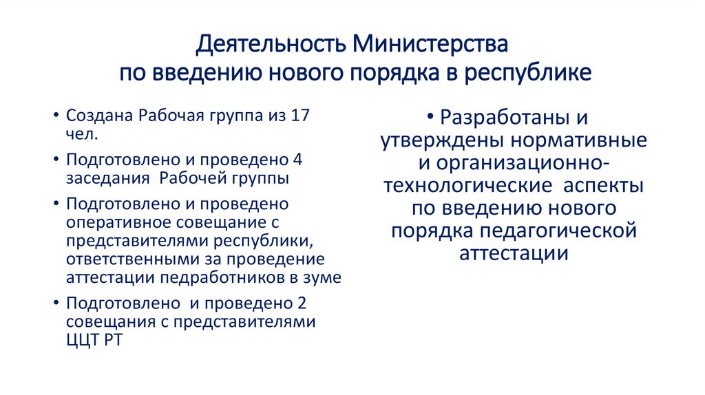 Деятельность Министерствапо введению нового порядка в республике