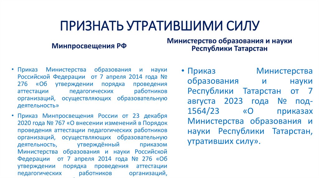 ПРИЗНАТЬ УТРАТИВШИМИ СИЛУМинпросвещения РФ