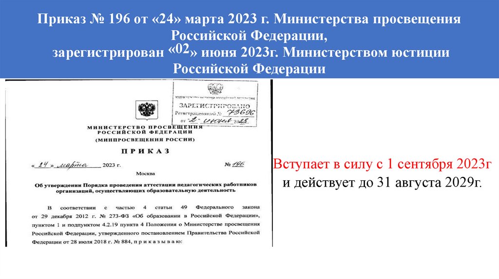 Приказ № 196 от «24» марта 2023 г. Министерства просвещенияРоссийской Федерации,