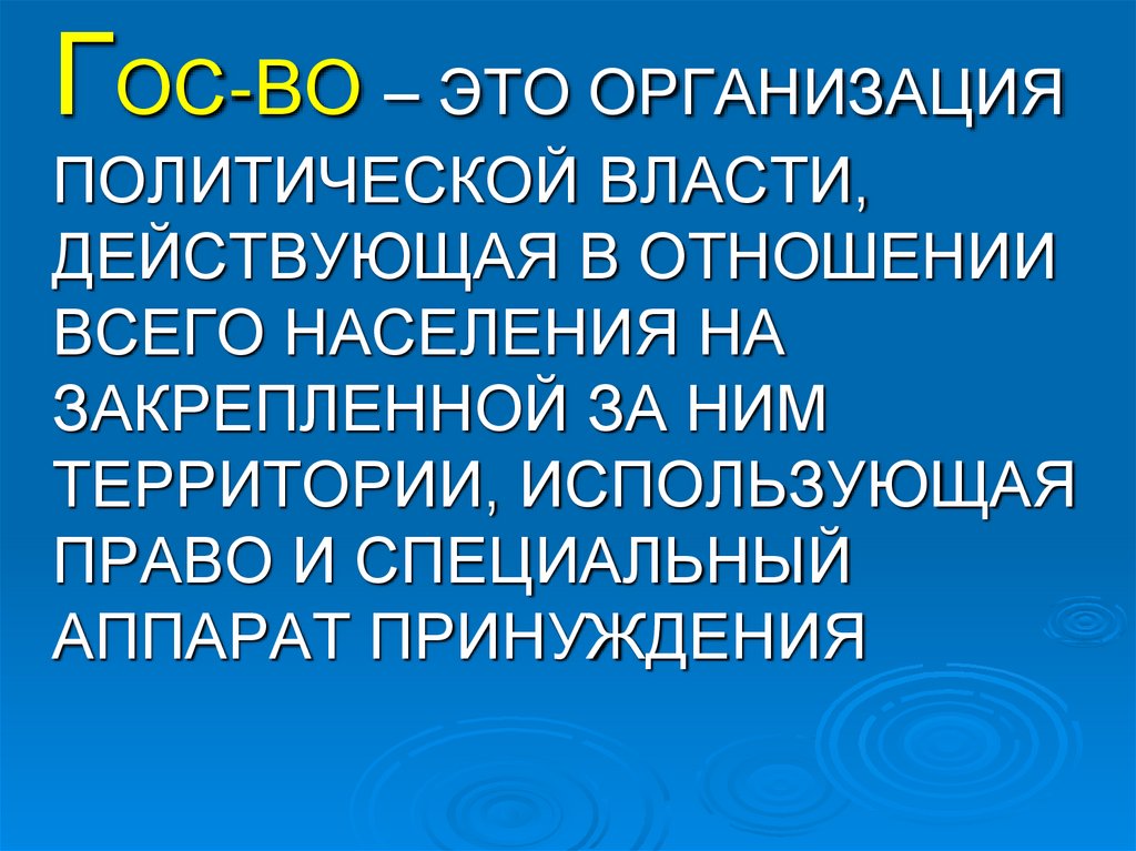 ГОС-ВО – ЭТО ОРГАНИЗАЦИЯПОЛИТИЧЕСКОЙ ВЛАСТИ,