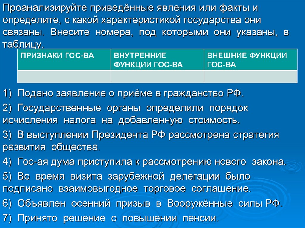 Проанализируйте приведённые явления или факты иопределите, с какой характеристикой государства они