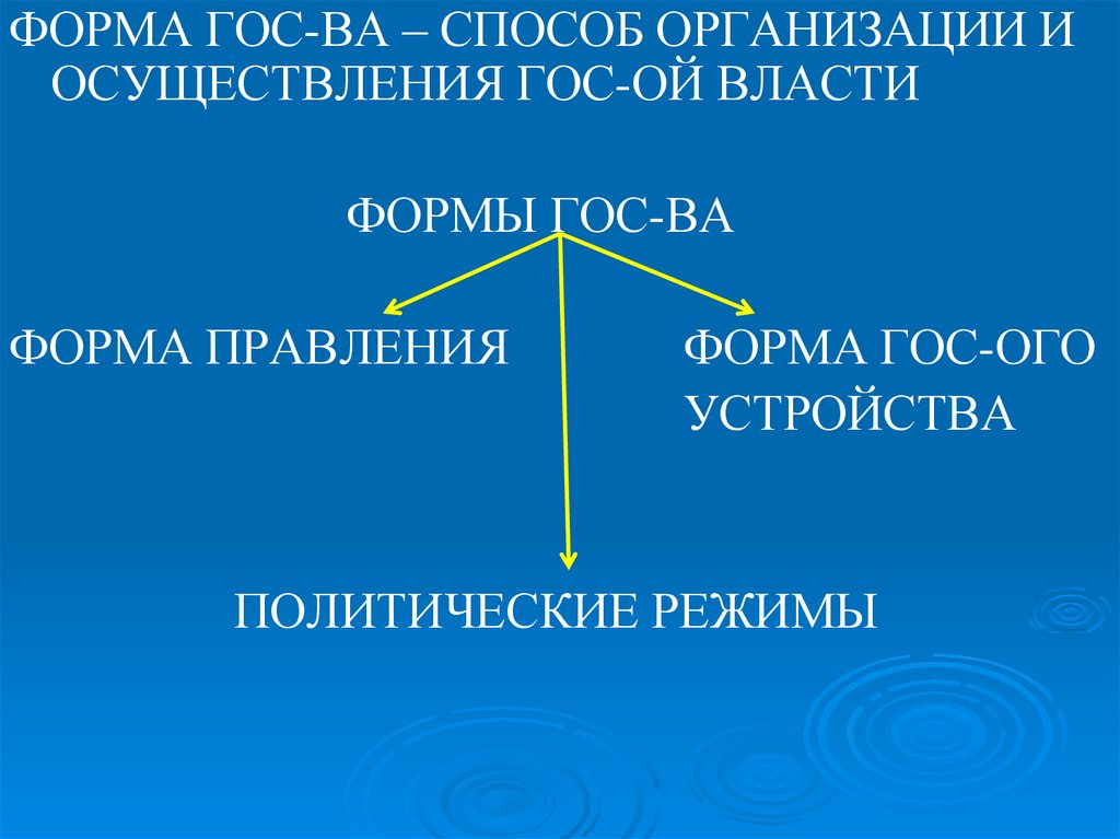 ФОРМА ГОС-ВА – СПОСОБ ОРГАНИЗАЦИИ ИОСУЩЕСТВЛЕНИЯ ГОС-ОЙ ВЛАСТИ