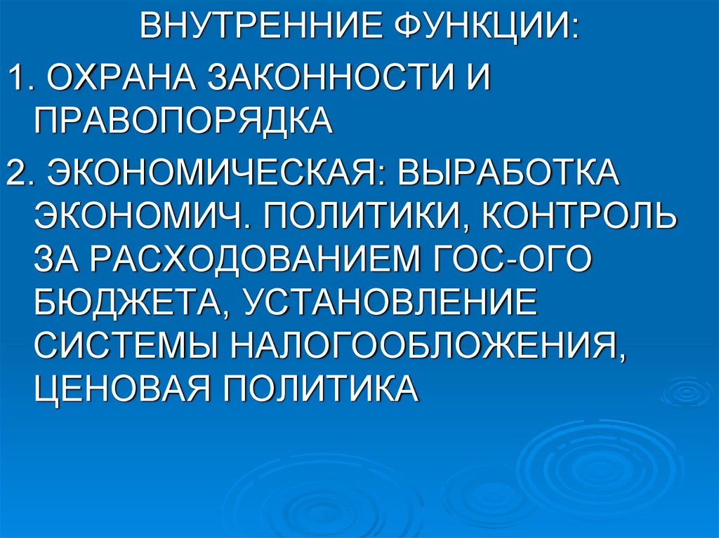 ВНУТРЕННИЕ ФУНКЦИИ:1. ОХРАНА ЗАКОННОСТИ И