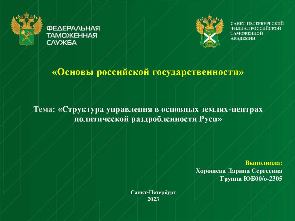 Тема: «Структура управления в основных землях-центрах