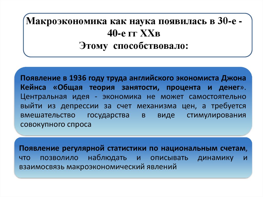 Макроэкономика как наука появилась в 30-е 40-е гг XXвЭтому способствовало: