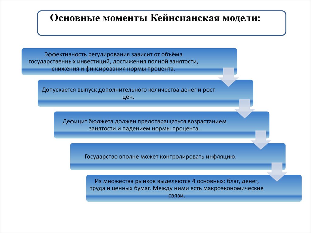 Основные моменты Кейнсианская модели:Эффективность регулирования зависит от объёма