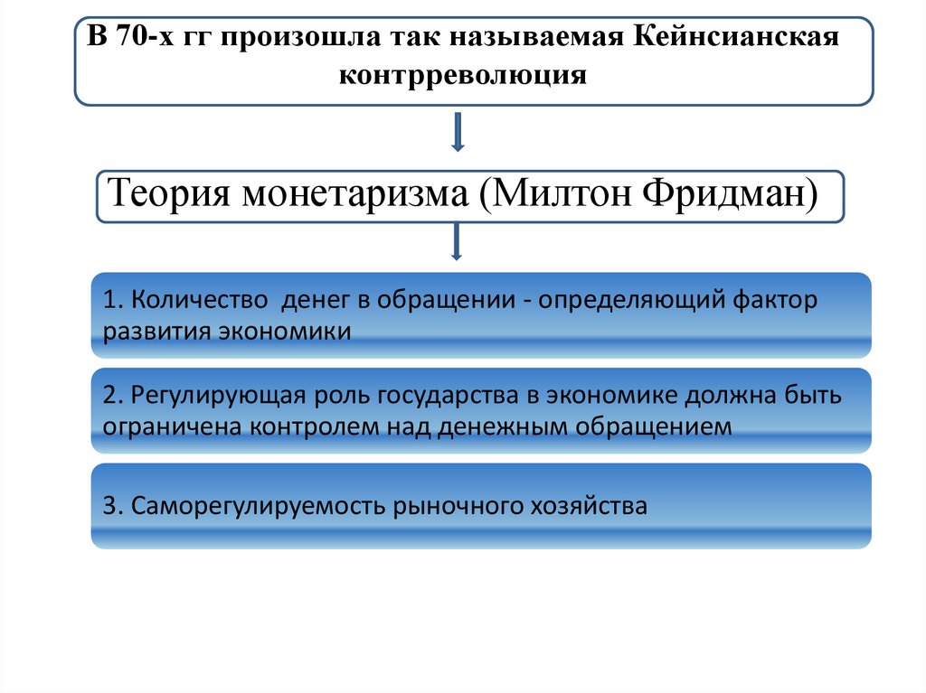 В 70-х гг произошла так называемая Кейнсианскаяконтрреволюция