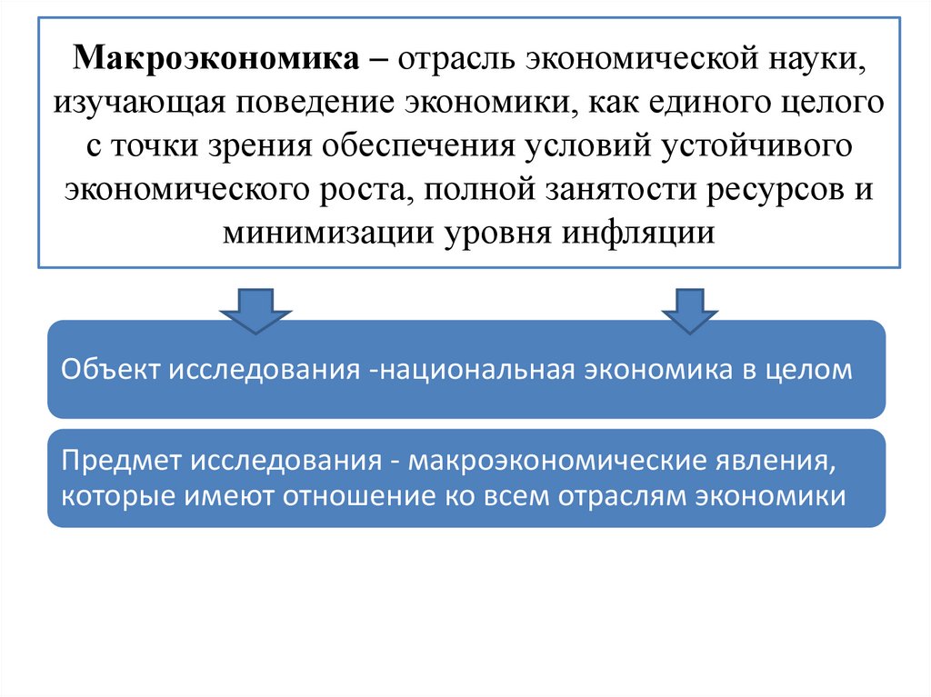 Предмет исследования - макроэкономические явления,
