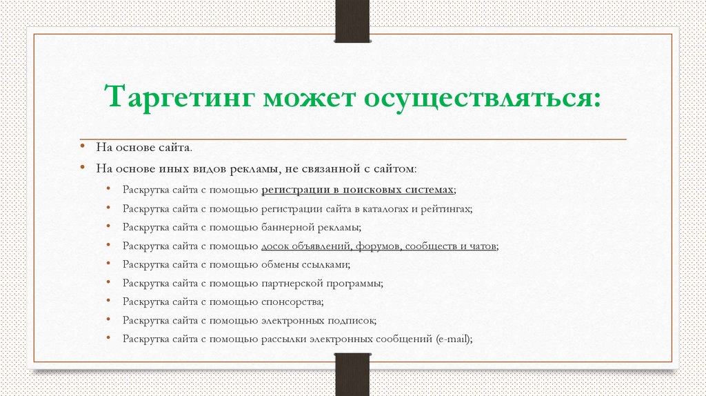 Таргетинг может осуществляться:• На основе сайта.