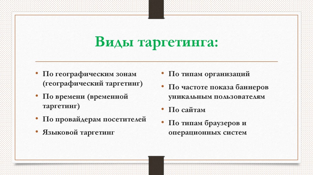 • Виды таргетинга
