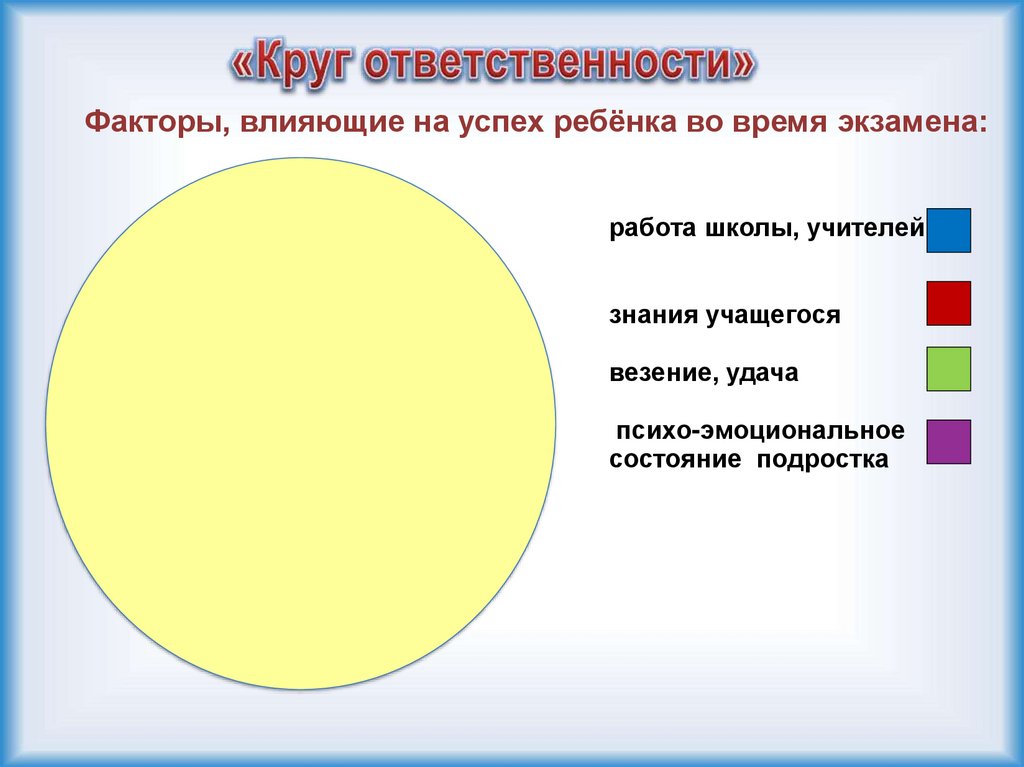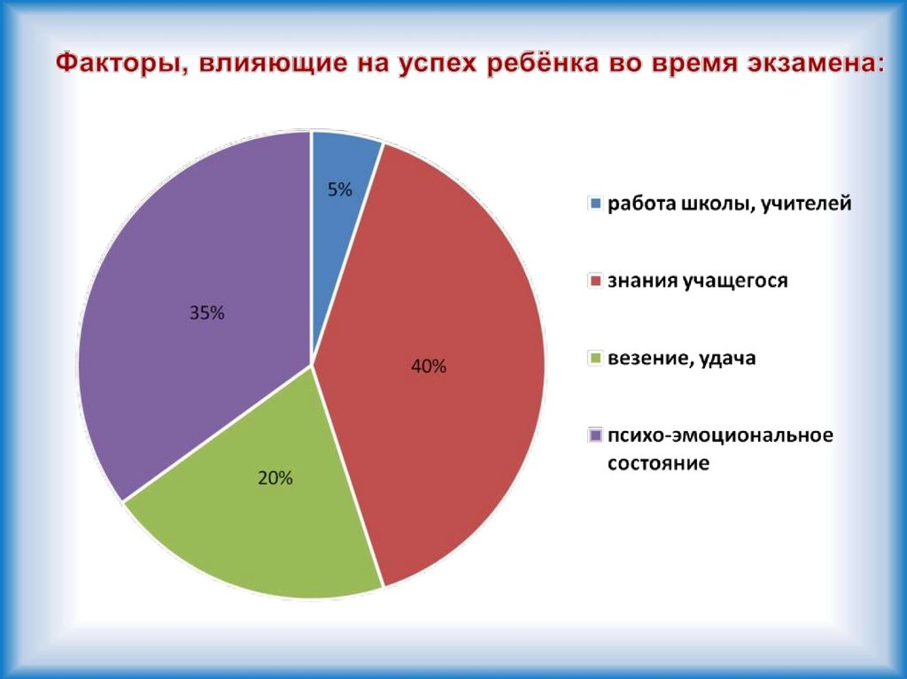 Факторы, влияющие на успех ребёнка во время экзамена:работа школы, учителей