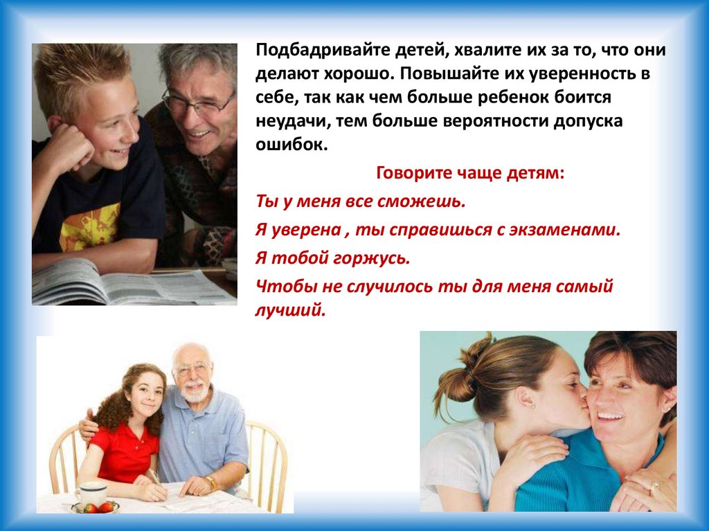 Не тревожьтесь об оценке, которую подросток получит наэкзамене, и не критикуйте его после экзамена.