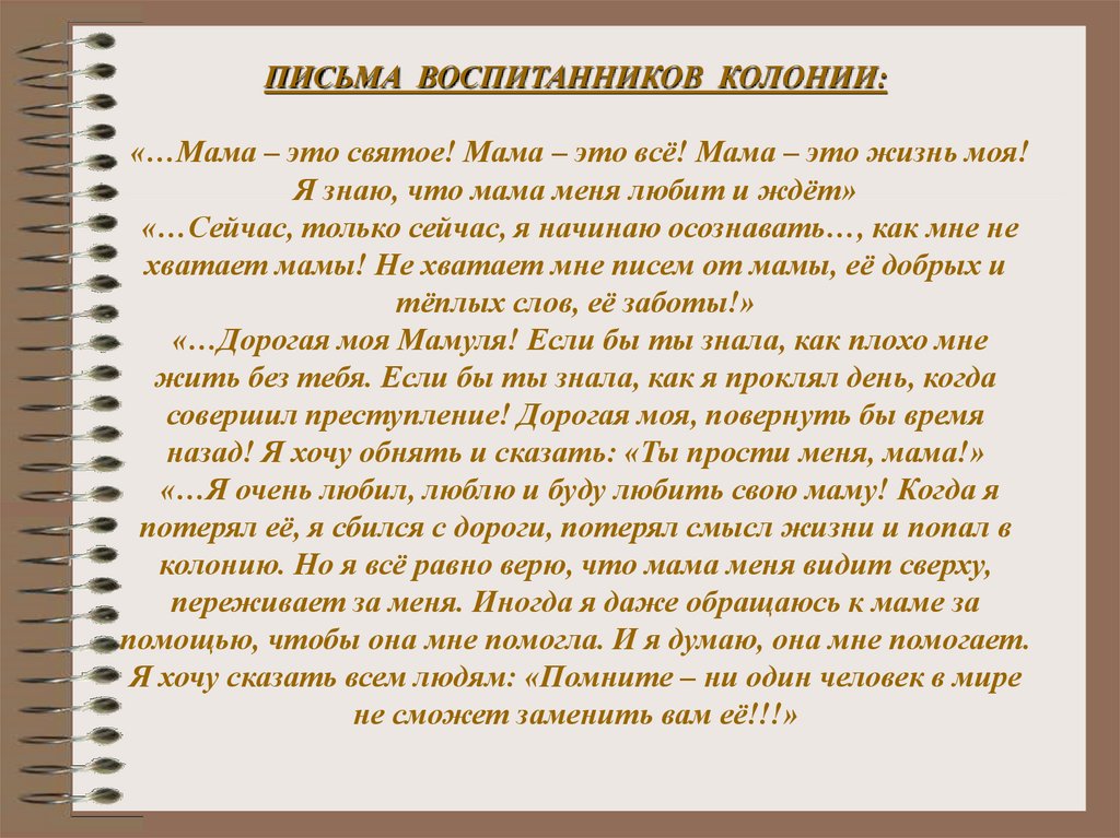 ПИСЬМА ВОСПИТАННИКОВ КОЛОНИИ:«…Мама – это святое! Мама – это всё! Мама – это жизнь моя!