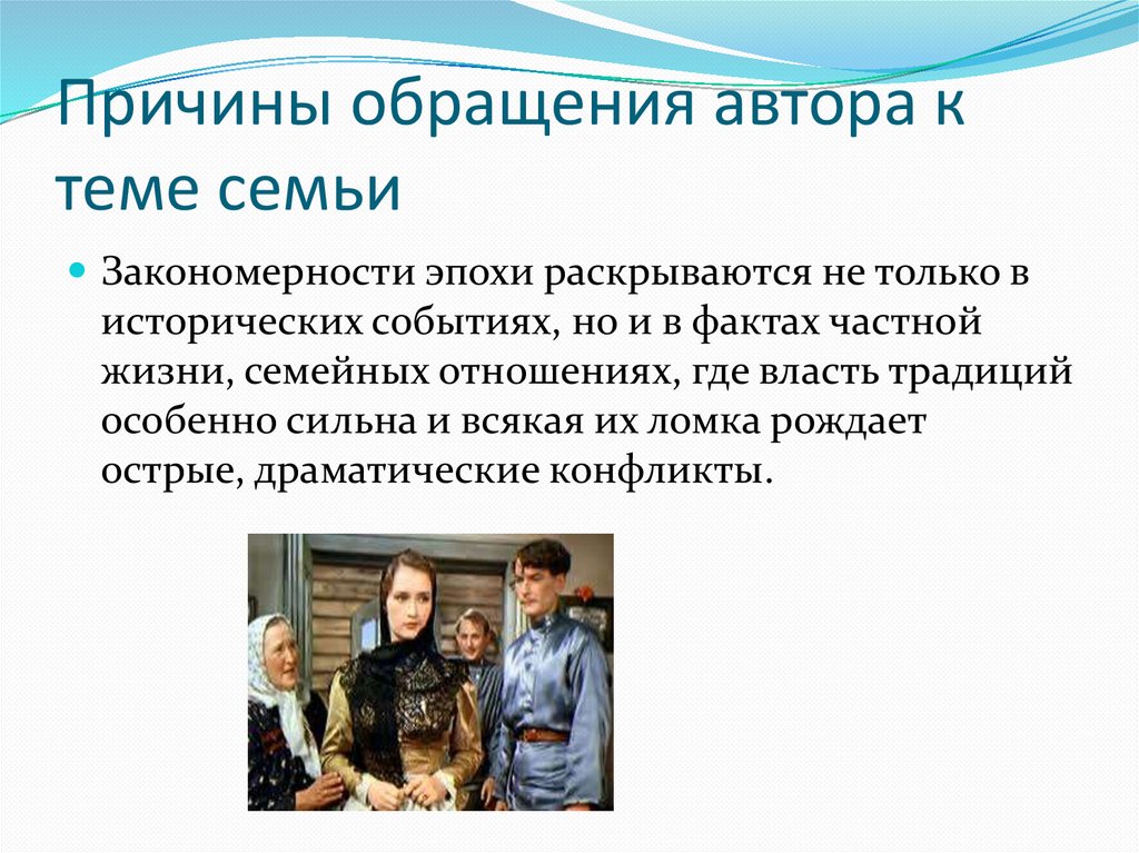 Причины обращения автора ктеме семьи