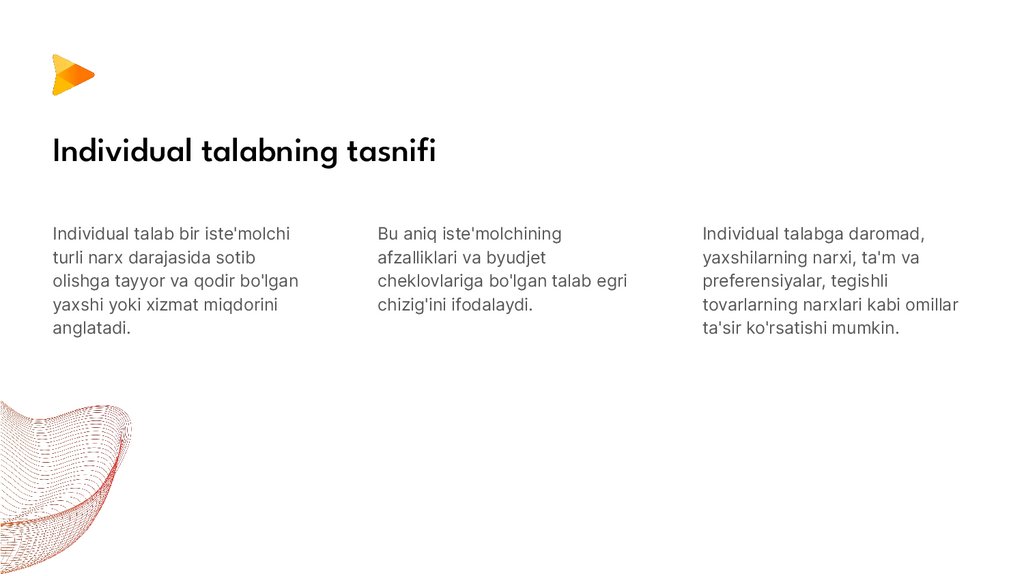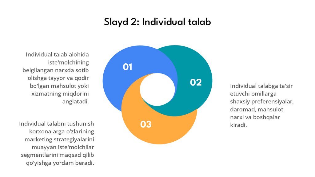 Individual va bozor talabini tushunishUshbu taqdimot individual va bozor talabining umumiy ko'rinishini