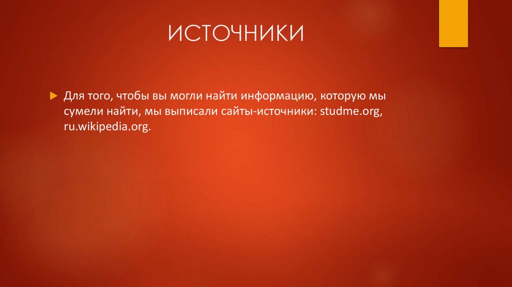 ИСТОЧНИКИДля того, чтобы вы могли найти информацию, которую мы