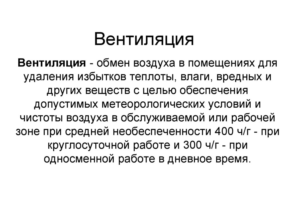 Вентиляция - обмен воздуха в помещениях дляудаления избытков теплоты, влаги, вредных и