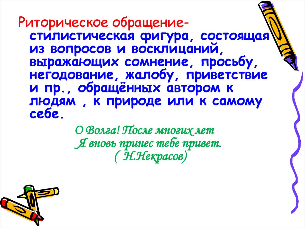 Риторическое обращениестилистическая фигура, состоящаяиз вопросов и восклицаний,