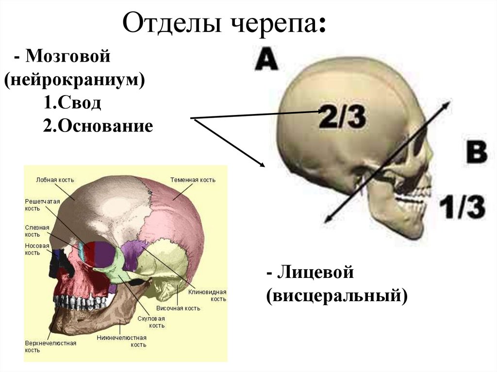 Обзор строения черепа. Отделы черепа. Кости лицевого черепа