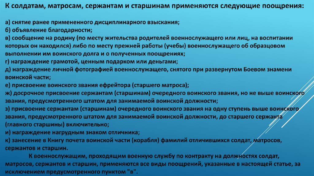 12. 1. Какие поощрения применяются к солдатам (матросам), сержантам (старшинам)? 2. Классификация правовых поощрений