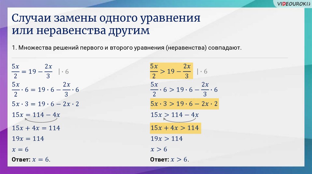 Равносильные уравнения и неравенства