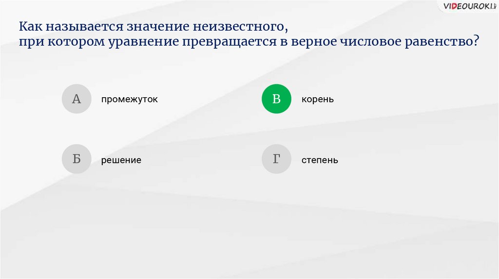 Как называется значение неизвестного,при котором уравнение превращается в верное числовое равенство?