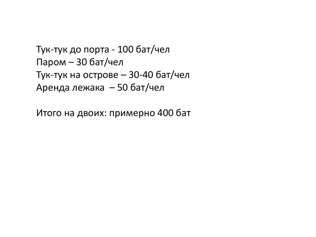 Тук-тук до порта - 100 бат/челПаром – 30 бат/чел